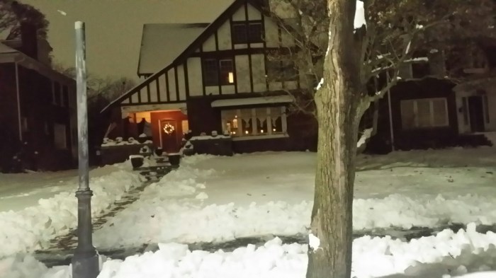 Mother nature decide to dump 12inches of delicate snow upon us. Since I don’t own a snow blower I had to shovel it all. Lucky for me it wasn’t terribly cold immediately after. I had to go on a scavenger hunt for a new shovel and rock salt as the blizzard created mass panic causing stores to sell out of everything. The side walks and walkway took a whole 50 lbs bag of salt to clear out the snow. It also took and additional 10 lbs of ice pellets to double secure the stairs and porch.