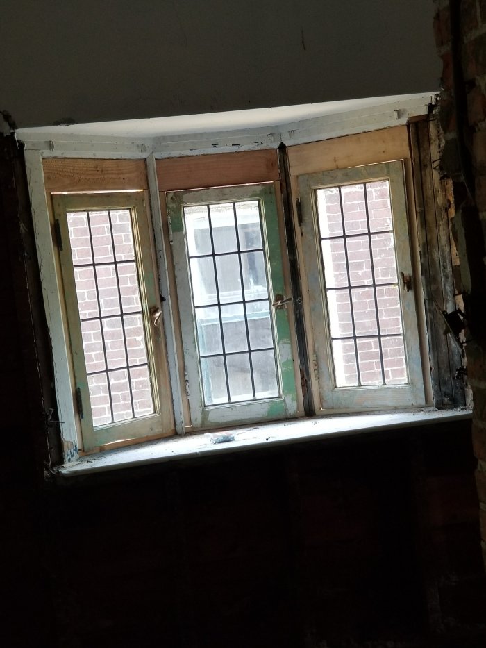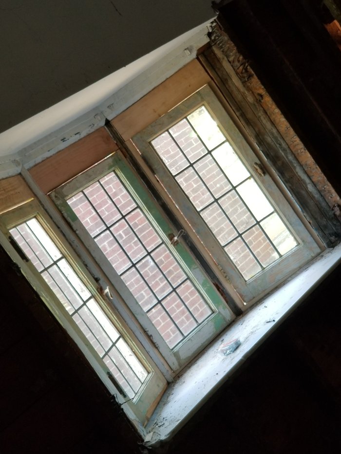 I striped most of the paint off them and finally installed them. There was a moment I thought it was going to look like a disaster because they were smaller than the window opening, but it worked itself out.