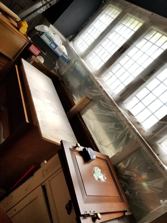 I sorted the trim wood on the porch and put up the scaffold so I could start striping the paint from the underside of the porch.