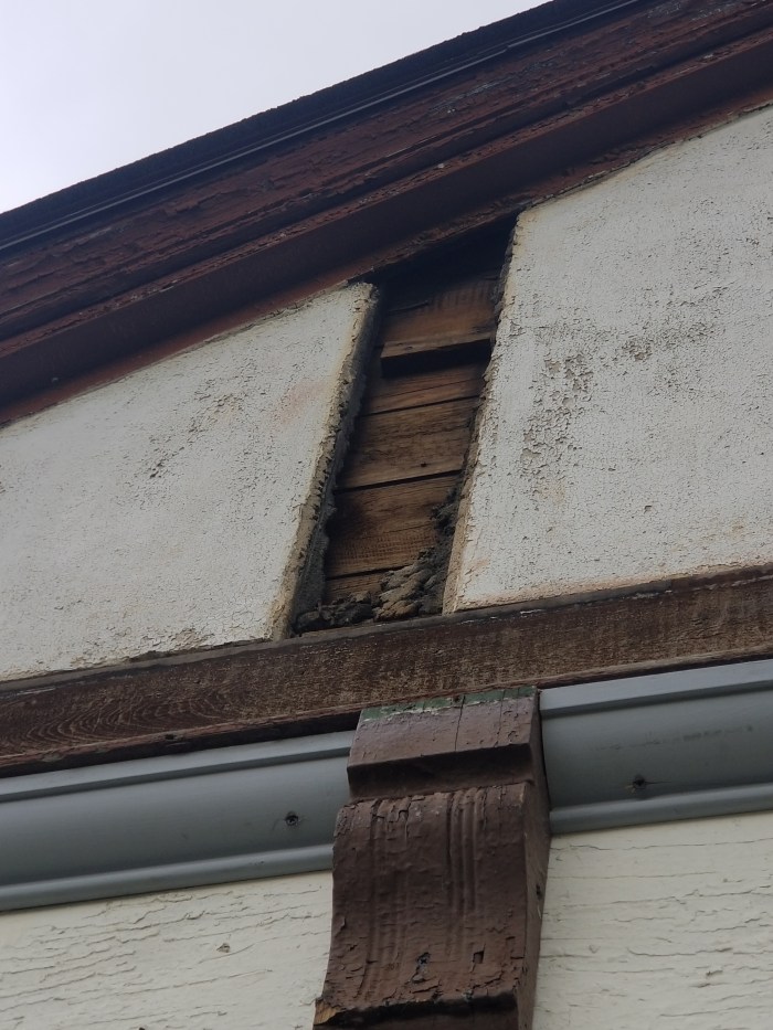 This half timber was missing for a while. I routed the sides of the new wood down to fit in between the stucco and primed the hell out of it.