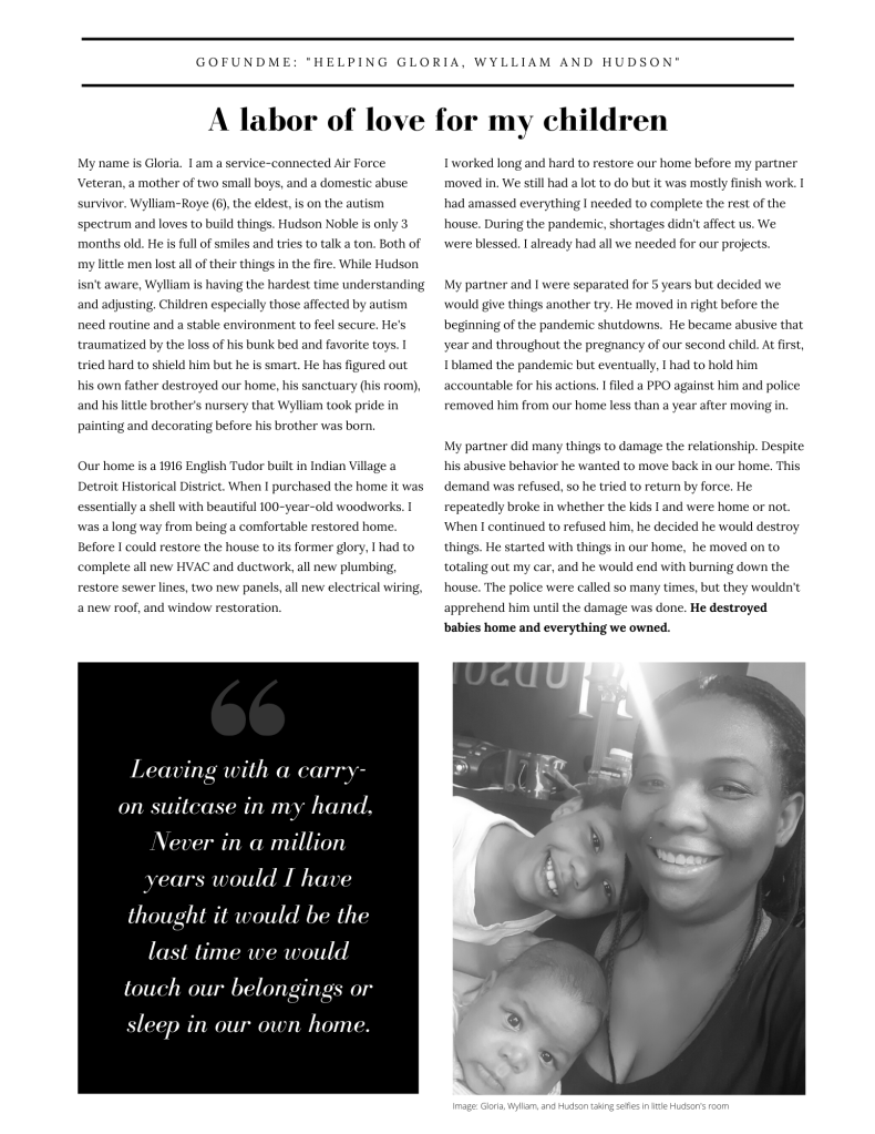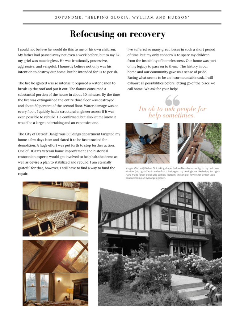 Share our Story. I would like to be a testimony to others in similar situations that you can start again, rebuild, rebound and recover. All is never lost. I am living proof despite it all you you can persevere as a single mom; rebuild and restore from nothing but ashes. I’m an open book sharing my journey. Help me help others in my shoes.